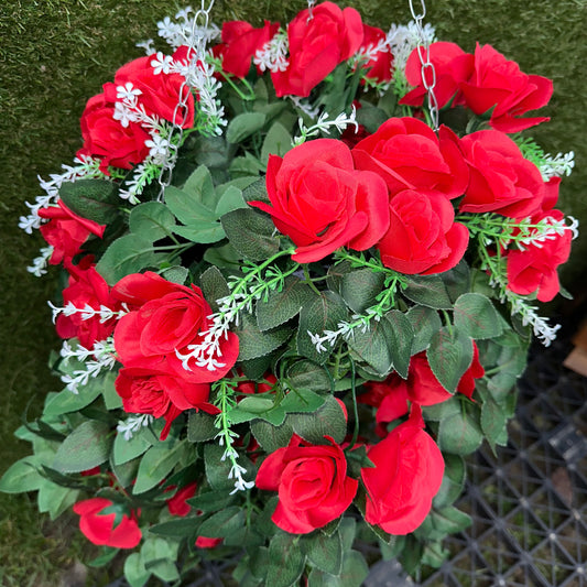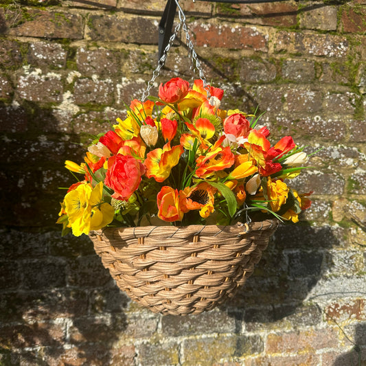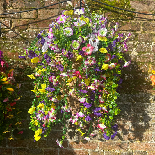 12” VE Day faux florals hanging basket
